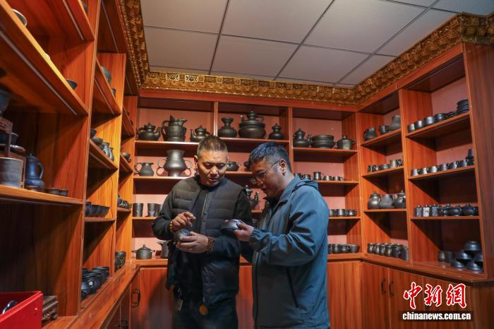 图为匠人正正在挨包便将贩卖的班玛乌陶。中新社记者 马铭行 摄