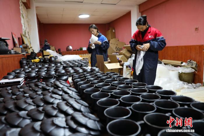 图为匠人正正在挨包便将贩卖的班玛乌陶。中新社记者 马铭行 摄